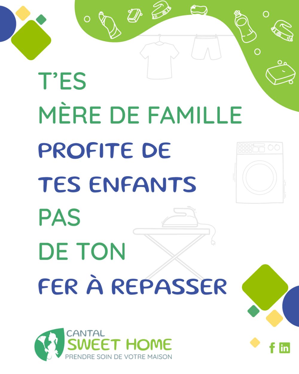 Chez Cantal Sweet Home, on sâoccupe de ton mĂ©nage , de ton repassage  et bien plus encore  Pour que tu puisses te concentrer sur lâessentiel : ta famille  ! Cantal Sweet Home, câest : Un service de proximitĂ©, local et Ă ton Ă©coute Des professionnels qualifiĂ©s pour une qualitĂ© irrĂ©prochable Et en plus, 50% de crĂ©dit dâimpĂŽts ! (Oui, oui )Alors⊠va vite profiter de tes loulous  et oublie les corvĂ©es !On sâoccupe du reste  Renseignements & contact : 98 Rue LĂ©on Blum â 15000 Aurillac 04 43 04 00 56 Cette adresse e-mail est protĂ©gĂ©e contre les robots spammeurs. Vous devez activer le JavaScript pour la visualiser. cantal-sweethome.frÂ